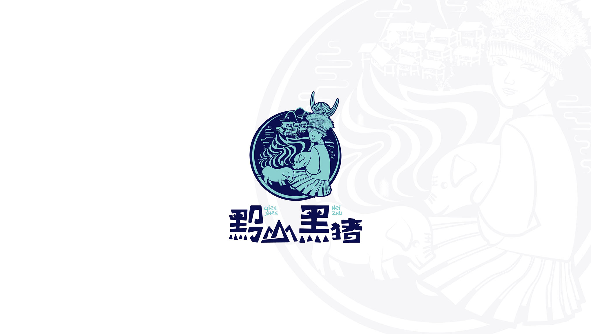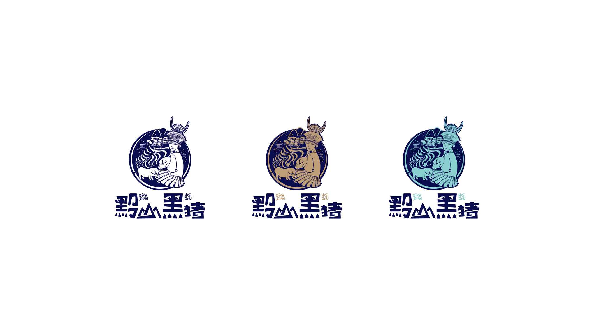 以黔山黑猪所在的雷公山苗寨元素提炼与黔山黑猪相结合,通过插画表现方式来设计logo,以此来展现黔山黑猪产品顺应自然,尊崇自然,回归自然,自然生态的原始生长方式和原始生态环境。突出了品牌的根源,更能使消费者一目了然的了解产品。利于黔山黑猪品牌的快速传播和品牌形象的打造。区别于品牌同质化产品,具有差异性,独特性,便于消费者识别。