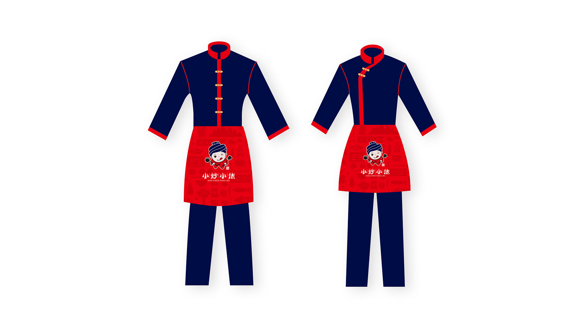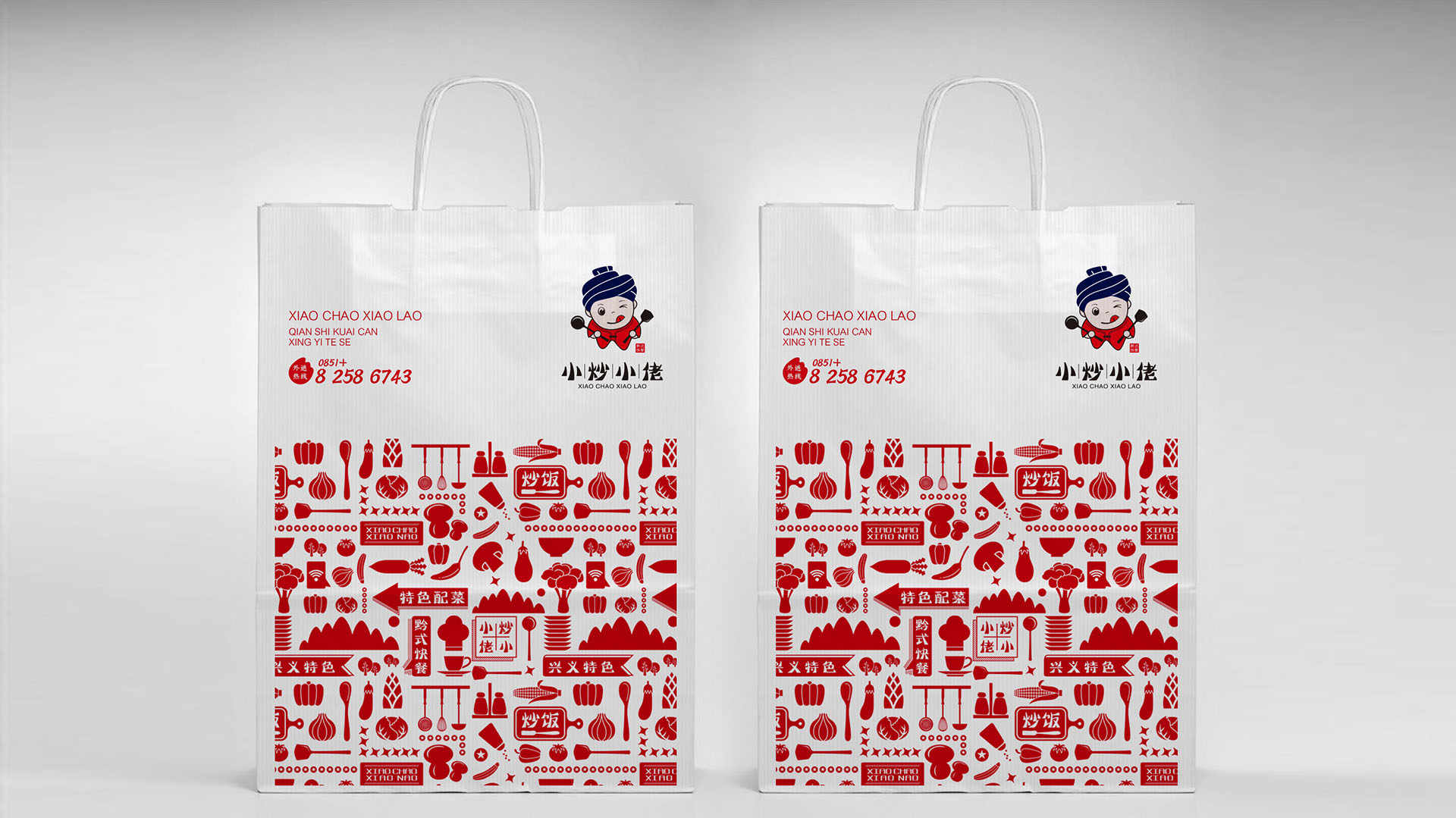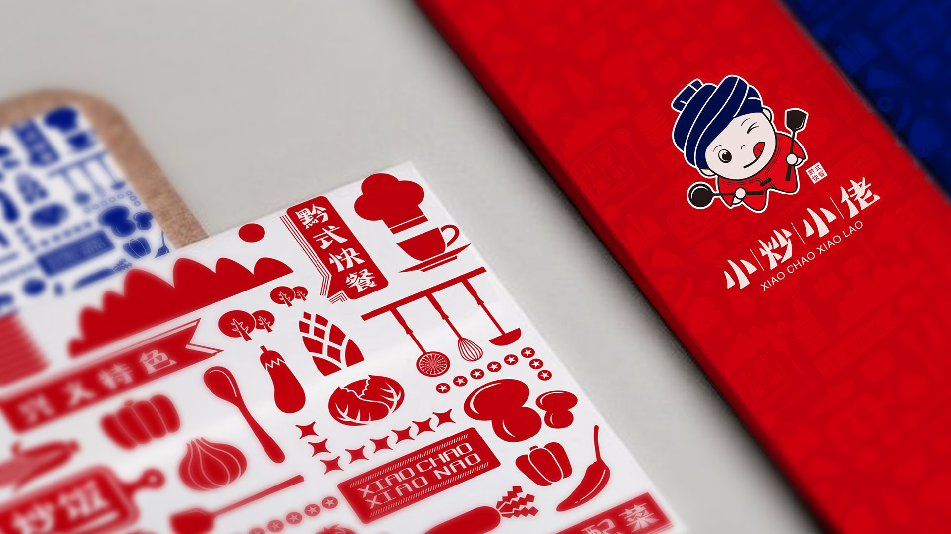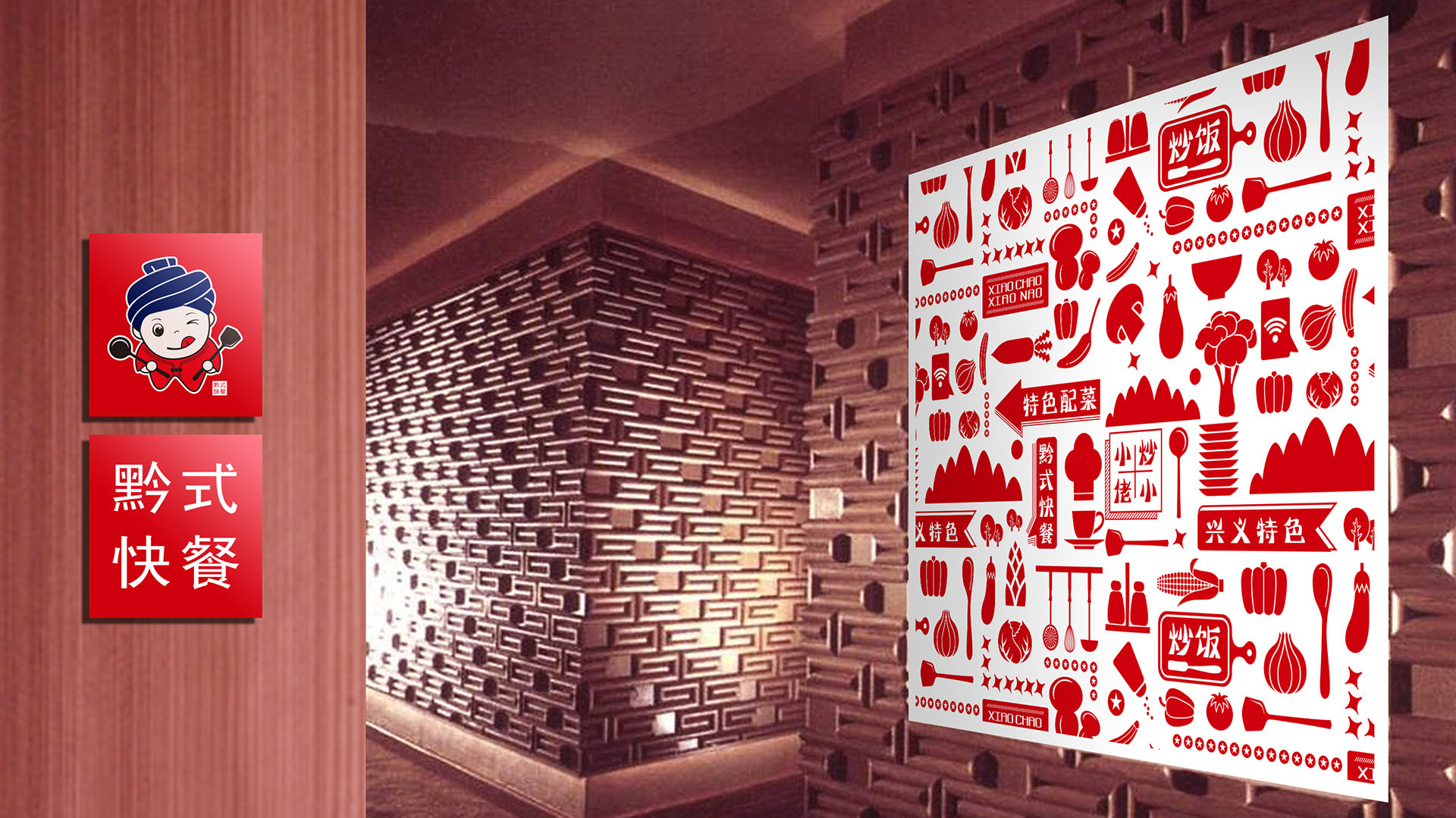 标志设计由布依族男性形象为设计元素,贵州步道设计机构品牌设计师通过艺术化手法将其抽象为卡通民族形象,同时并对表情、肢体动作夸张处理,头部微微上扬,显得非常的可爱与淘气。通过这样的处理风格,不仅可以让标志具有亲和力,更能让人记住小炒小佬的品牌,传递小炒小佬的品牌价值,让标志的价值得到了最大限度的发挥。 同时标志也结合兴义万峰林独特的形态元素,将之化为卡通形象的手和脚,简洁中透露出大气与时尚,个性中蕴含着亲切与活力。